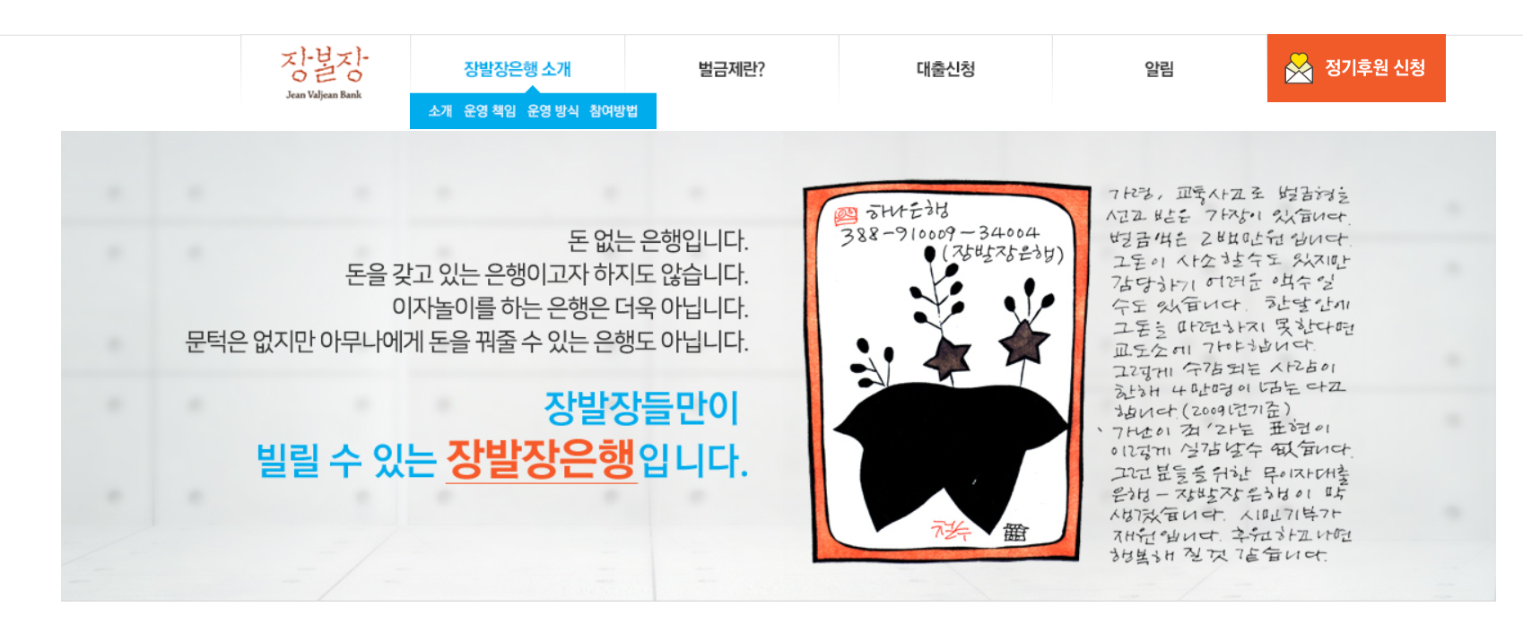 장발장은행 누리집 내 소개 부분